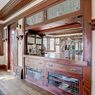The turn of the century was a melting pot of many architectural influences, one of the largest at this time was the Arts and Crafts movement which swept over southern California in the shape of Craftsman Bungalows, primary inspired by the work of the Greene brothers who practiced in Pasadena from 1893 to 1914. The Arts and Crafts movement was not about a particular style or set of design requirements but focused on the lost art of age-old skills in furniture making, woodworking and construction, a return to natural materials, craftsmanship, and a truer design aesthetic. Mission style adopted this philosophy and incorporated well-crafted inglenooks and built-in cabinetry, beamed ceilings, and handmade metal details like cabinet hardware and lighting fixtures. That’s why you may walk into many grand Mission style homes and scratch your head and say, “It looks like I’m in a craftsman”.